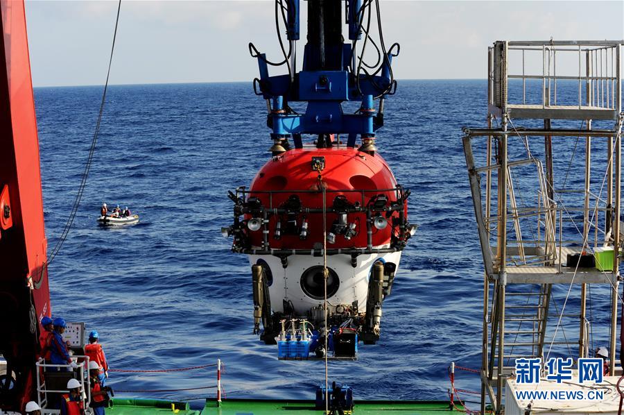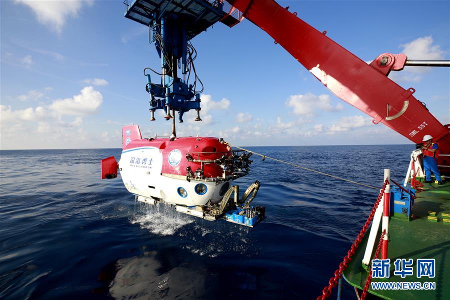 5月17日,“深海勇士”号从母船出发。新华社记者 张建松 摄