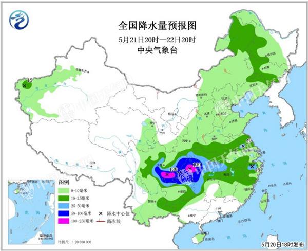 今明天,我国南方地区再遭强降雨。中央气象台预计,西南地区东部有一次强降雨过程,四川、重庆、湖北西南部、贵州北部等地有暴雨,局地大暴雨并伴有短时强降水、雷暴大风等强对流天气。过程最强时段为21日夜间至22日白天。为此,中央气象台5月21日06时继续发布暴雨蓝色预警。