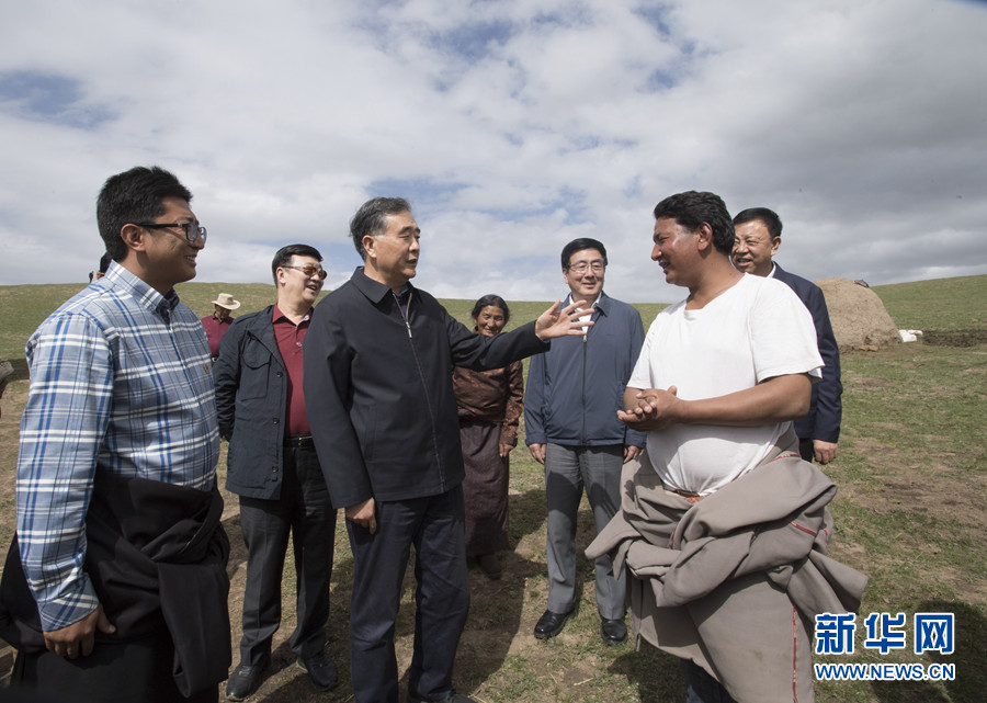 5月21日至23日,中共中央政治局常委、全国政协主席汪洋在甘肃甘南藏族自治州调研。这是5月22日,汪洋在夏河县曼玛村看望贫困牧民。新华社记者李学仁 摄