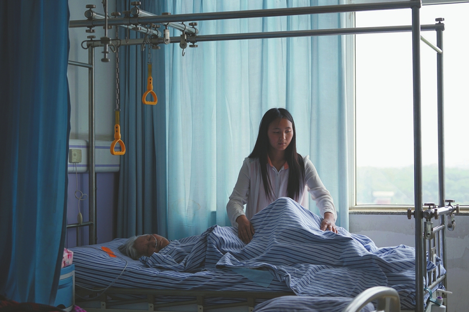 代丽飞高二那年,82岁的奶奶毛玉芳突发脑溢血被送进医院,诊断结果为偏瘫,这意味着奶奶随时需要被人照顾。代丽飞的爸爸自小因患脑膜炎而智力低下,姑姑叔叔年纪也不小了,家人无奈商定,把奶奶送去养老院。