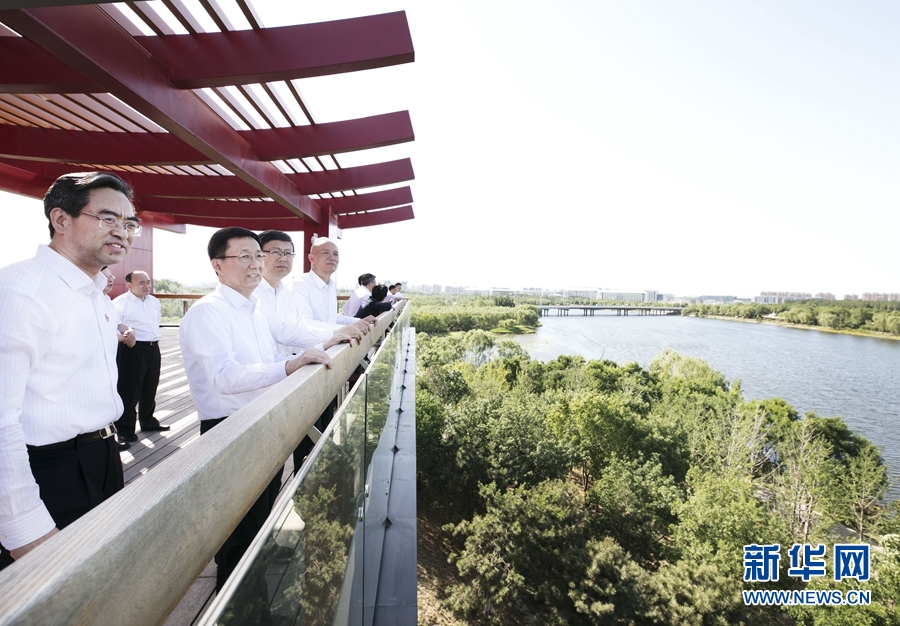 5月28日,中共中央政治局常委、国务院副总理韩正在北京市通州区调研北京城市副中心规划建设工作。这是韩正在大运河森林公园察看大运河沿岸生态环境治理情况。新华社记者 王晔 摄