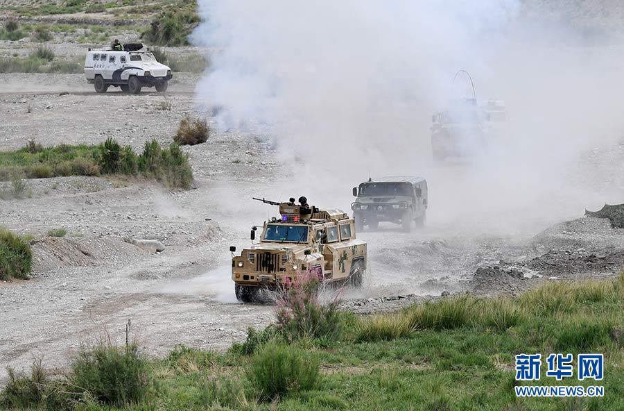 2017年6月27日,代号为“天山-3号(2017)”的上海合作组织成员国中吉边防部门联合反恐演习在中吉两国边境同时打响。新华社记者 王菲 摄