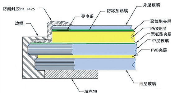 A320系列的风挡由多层不同的材料组成,最外层的是热钢化玻璃,位于中层和内层的是化学强化玻璃,各层玻璃之间通过聚胺酯层和PVB层粘接在一起。