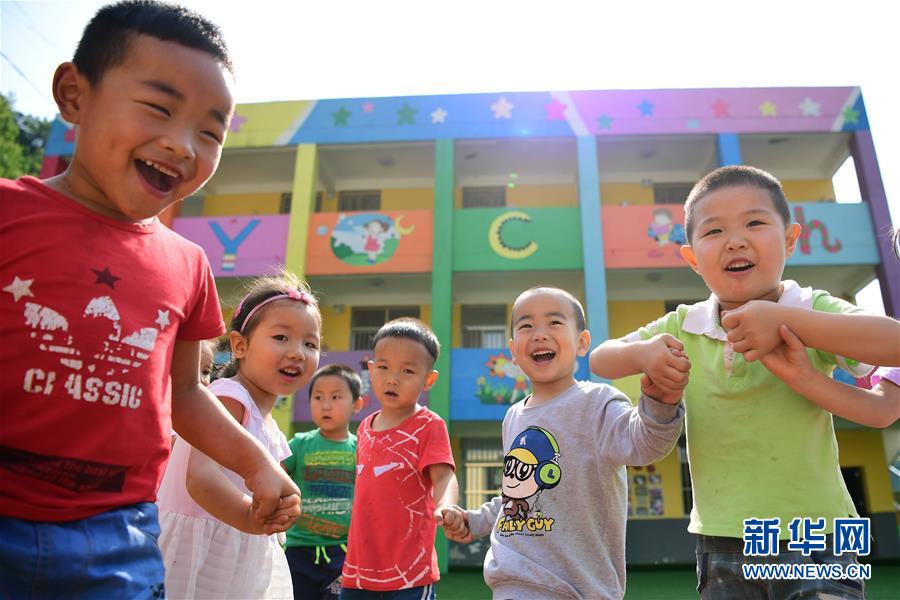 陕西省安康市汉滨区双龙镇杜坝村五四小学附设幼儿园小朋友们在操场上做游戏(2017年6月16日摄)。这个幼儿园使用贷款资金翻修改造而成,有效解决了该村及周边儿童学前教育缺失的问题。新华社记者 邵瑞 摄