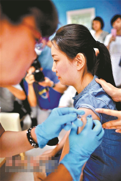 史佳雨在接种HPV9价疫苗。(图片来源:海南日报)