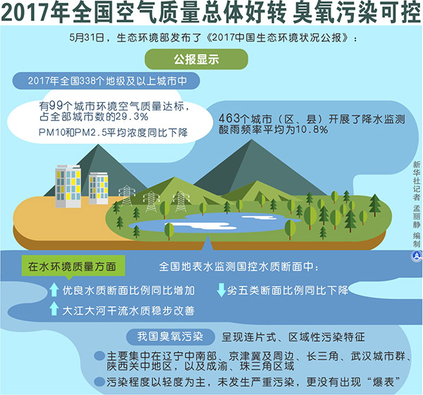 图表:2017年全国空气质量总体好转 臭氧污染可控 新华社记者 孟丽静 编制