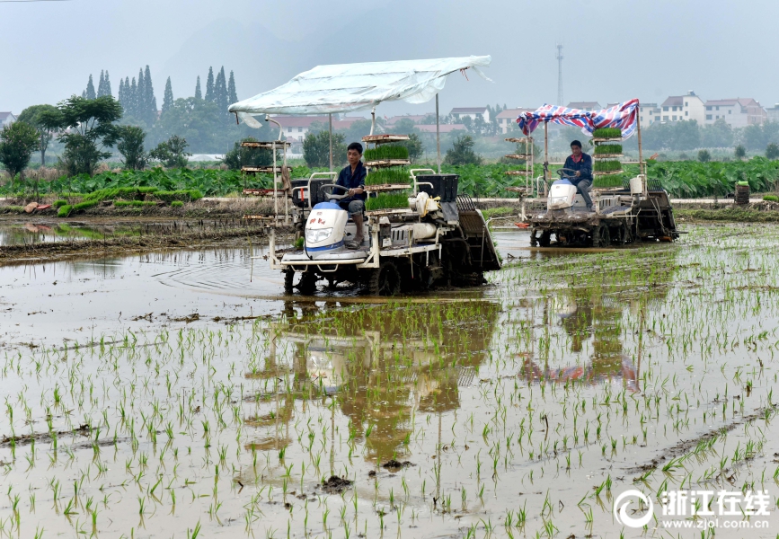 武义县王宅镇陶宅村种粮大户方晓辉忙着插种单季稻。
