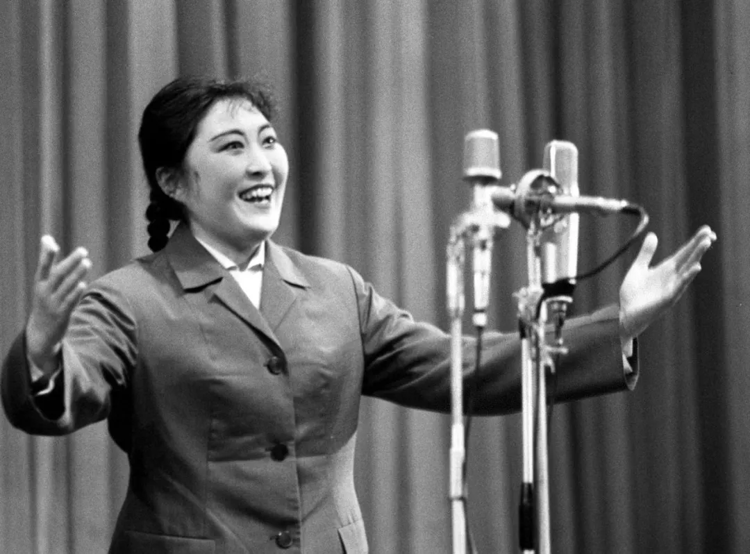 ▲女高音独唱叶英,22岁,来自长白山林区。她演唱《世世代代铭记毛主席的恩情》等歌曲,清脆嘹亮,亲切感人。她是1977年高考被中央音乐学院录取的考生。( 新华社记者 蒋齐生 摄)