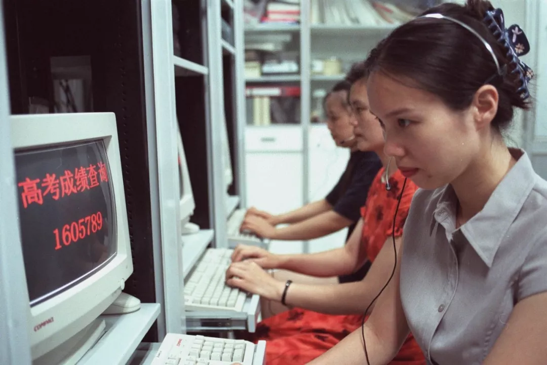 ▲1998年7月24日中午12时,北京电报局160信息台与北京高校招生办公室联合开通了24小时高考成绩查询热线,考生只需拨通1605789,再输入准考证号码,既能获取高校招生考试各科成绩。这不仅方便了广大考生及家长,也有利于招生工作中公开、公平、公正原则的实施。这是160信息台话务员在人工辅助考生查询。 (新华社记者 张旭 摄)