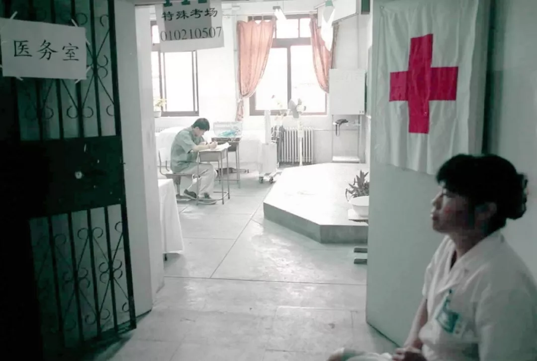 ▲1999年7月7日,北京近5万名考生走进考场参加一年一度的高考。在北京市第二中学考点,北京市高招办特意为一名患有自发性气胸的考生陈迪扬安排了一间单人考场,单独配备了监考老师、医生和医疗设备。这是考生陈迪扬在特殊考场考试。自1999年开始,高等教育(包括大学本科、研究生)不断扩大招生人数的教育改革政策实施。(新华社记者 张旭 摄)