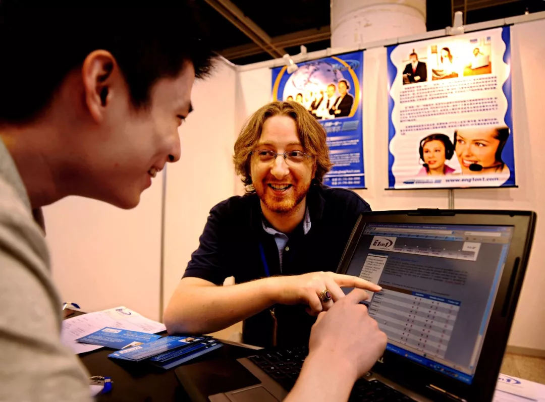 ▲2008年6月29日,一位浙江考生在向美国教师帕特里克·德莱尼(右)咨询美国大学招生情况。出国留学人数快速增长。(新华社记者 谭进 摄)