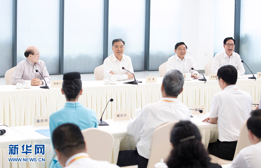 6月6日至7日,中共中央政治局常委、全国政协主席汪洋在厦门出席第十届海峡论坛期间,就两岸经济文化交流合作情况进行调研。这是6月6日,汪洋与在闽工作的台湾同胞代表座谈。新华社记者 王晔 摄
