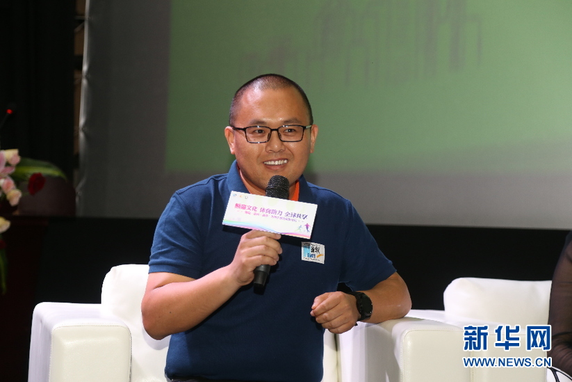 ↑新华网体育总经理侯大伟在发布会现场。新华网宋溪雨 摄