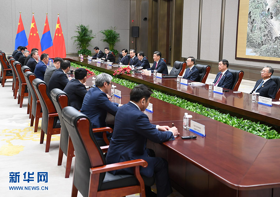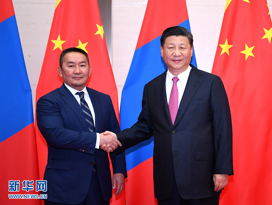 习近平指出,中蒙是山水相连的近邻。中蒙关系发展符合两国人民根本利益。我赞赏总统先生就任后多次表示重视中蒙关系,愿推动中蒙全面战略伙伴关系不断发展。中方愿同蒙方一道,本着互信、合作、共赢原则,把握机遇,排除干扰,扎实开展各领域交往和合作,丰富中蒙全面战略伙伴关系内涵,开创两国合作新局面。