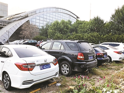 天通苑附近停车场和停车场外均有大量外埠车。摄影/付垚