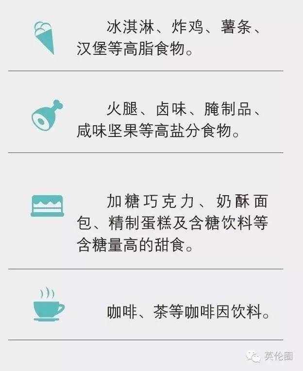 既然压力劳累可能导致肥胖,英国著名的健康网站顺势发表了一篇文章,表示这些食物可能会导致人体激素水平失衡、从而压力更大哦: