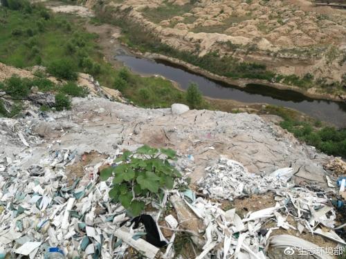此外,在大沙河石家庄市新乐段,督察人员也发现河道沙坑中堆存大量固体废物,大多为废弃边角料、生活垃圾、工业废渣等。