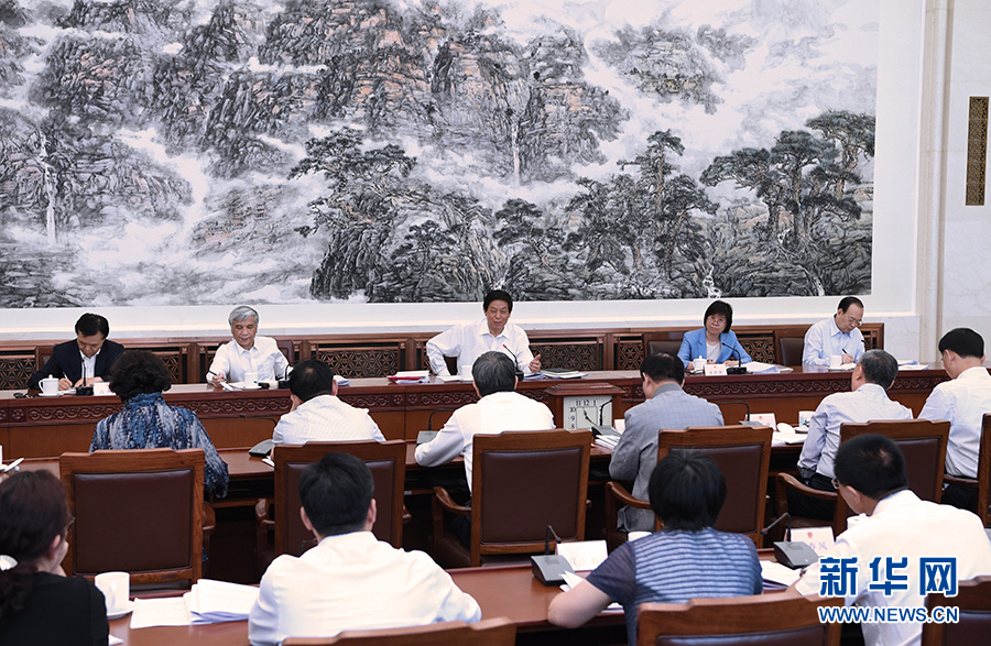 6月15日,中共中央政治局常委、全国人大常委会委员长栗战书在北京主持召开全国人大常委会大气污染防治法执法检查组第二次全体会议。新华社记者 饶爱民 摄