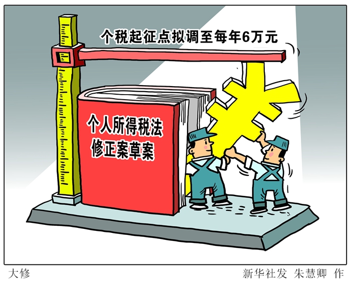6月19日提请全国人大常委会初次审议的个人所得税法修正案草案明确规定:对部分劳动性所得实行综合征税;优化调整税率结构;综合所得基本减除费用标准,即通常说的起征点,提高至5000元/月(6万元/年);首次增设专项附加扣除……这标志着我国建立综合与分类相结合的个人所得税制改革迈出实质性的一步。新华社发 朱慧卿 作