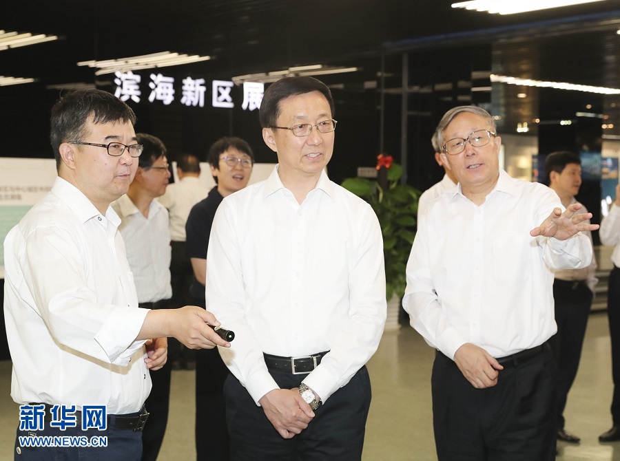 新华社天津6月20日电 中共中央政治局常委、国务院副总理韩正6月19日在天津市调研京津冀协同发展工作。韩正前往天津市规划展览馆,听取天津市总体规划及有关绿色生态屏障和湿地保护情况汇报;到科大讯飞人工智能产业示范基地,了解天津市加快建设全国先进制造研发基地和发展智能产业情况,察看企业在机器翻译、智慧医疗、智慧教育等领域的最新研发成果;到天津滨海-中关村科技园,调研园区建设和企业落户等情况,与入驻园区的企业职工互动交流;考察天津深之蓝水下新视界科技有限公司、零氪科技(天津)有限公司,了解企业自主创新发展情况。