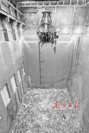 抓斗将发酵的垃圾抓起,准备送入焚烧炉。