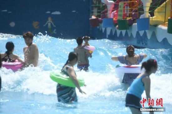 资料图:炎热高温天气下民众戏水觅清凉。陈超 摄