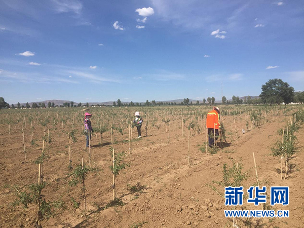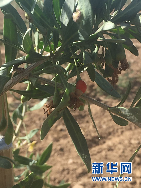 元山子乡枸杞种植基地内的枸杞有的已经结了果。 新华网 雷东瑞 摄