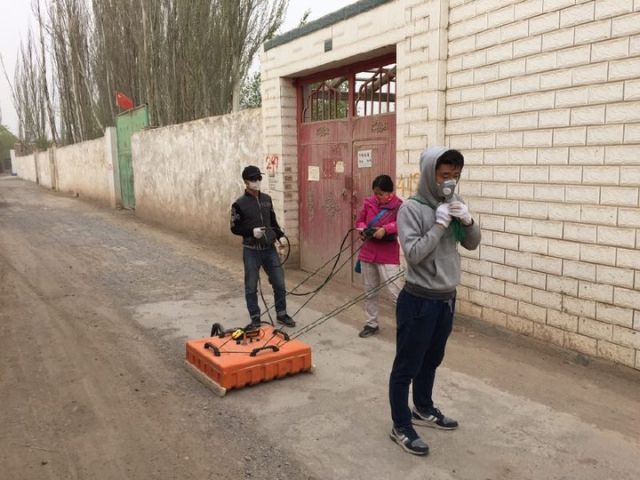 郭子祺团队带去了两种仪器:探地雷达和高密度电阻率仪。他介绍说,这两种方法相互弥补,探测结果互相印证。两种方法的综合使用可对地下的目标物体实现更高精度的探测。