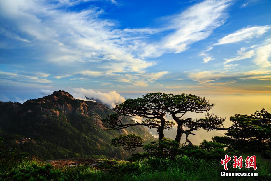6月29日傍晚,安徽黄山风景区雨后出现云海和晚霞景观,宛如壮丽画卷。中新社发 方立华 摄