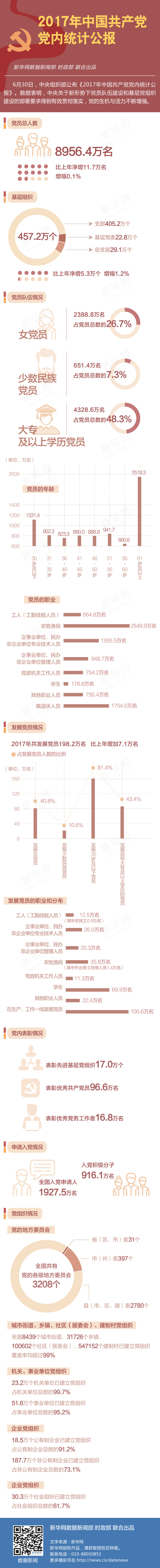 编辑: 于子茹 设计: 姜子涵 2018年06月30日 22:18:33 来源: 新华网2017年中国共产党党内统计公报