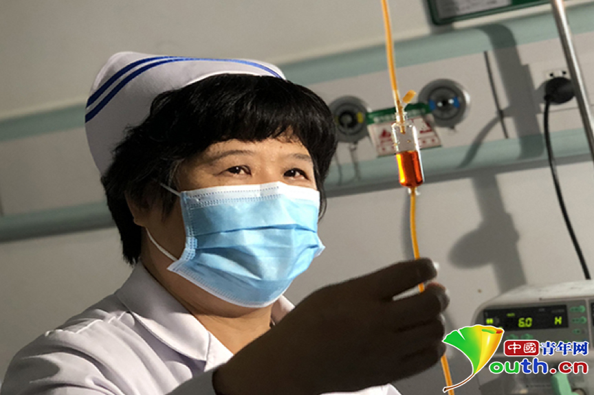 杜丽群在观察艾滋病患者的点滴情况。广西南宁市第四人民医院供图