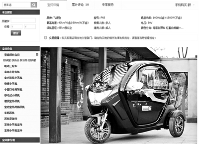 如淘宝上一家电动车销售商家就直言标注:“此车不能办理牌照,也不需要驾照,请根据当地实际政策购车,不能因上牌问题退货。”