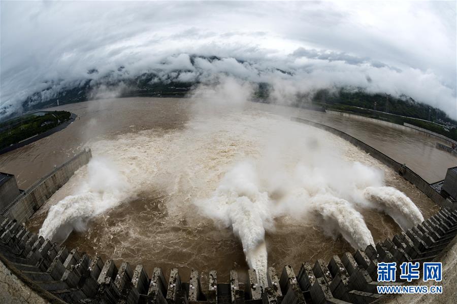 7月5日,江水通过三峡大坝泄洪深孔下泄。