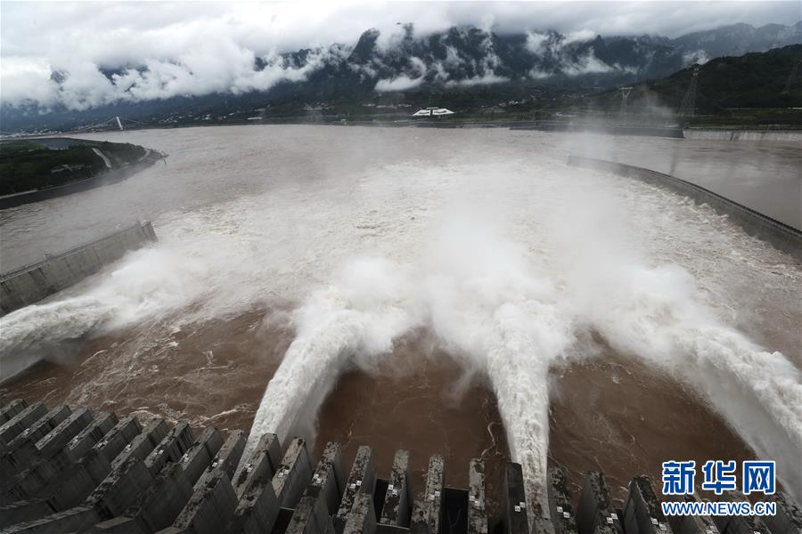 7月5日,江水通过三峡大坝泄洪深孔下泄。新华社发(王申 摄)