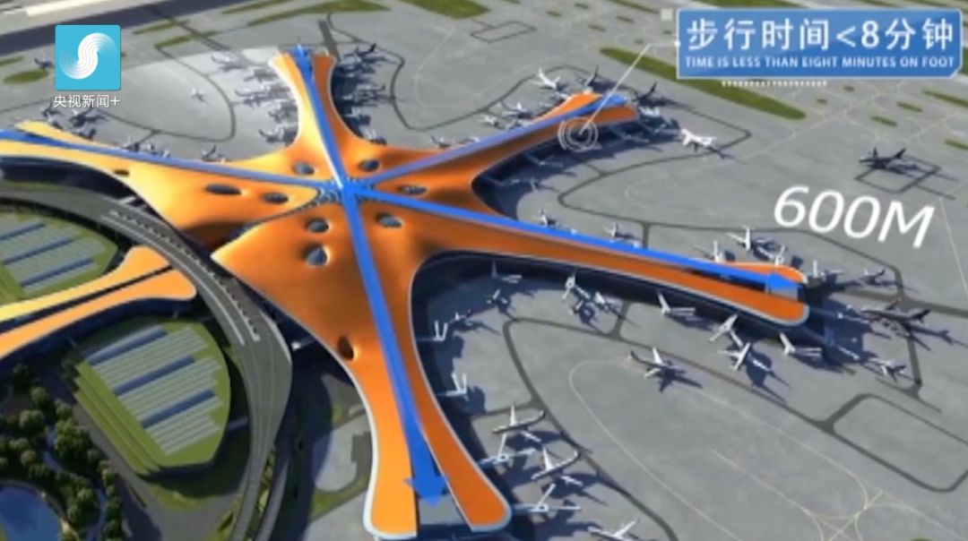 这样的设计不仅可以设置更多的进机位,而且也使航站楼中心到最远端登机口步行距离不超过600米,步行时间不到8分钟。
