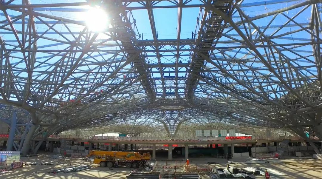 航站楼中央核心区的屋顶是不规则自由曲面、空间网架钢结构,面积18万平方米,用钢量4万多吨,相当于鸟巢的用钢量。