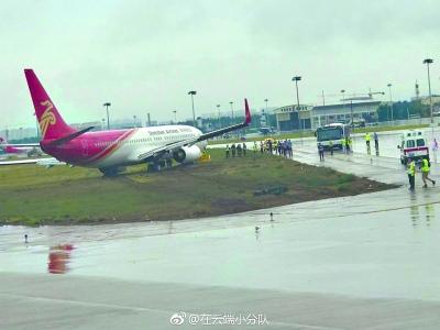 有网友将现场视频发布在网络上,视频中显示,一架深圳航空的飞机停在机场跑道旁的草坪上,草坪上有明显的飞机轮胎印记,多辆救援车辆及机场大巴停靠在飞机附近。