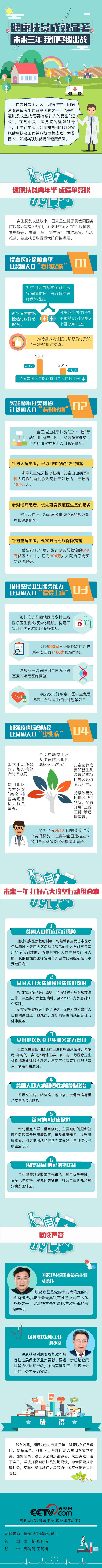 在农村贫困地区,因病致贫、因病返贫是最突出的致贫因素之一,也是打赢脱贫攻坚战需要持续补齐的民生“短板”。在党中央、国务院的坚强领导下,国家卫生健康委会同国务院扶贫办等有关部门,围绕让贫困人口“看得起病、看得好病、看得上病、少生病”,精准施策,统筹推进,健康扶贫取得重大阶段性进展。未来三年,我国将实施健康扶贫六大攻坚行动,为贫困人口如期实现脱贫提供健康保障。