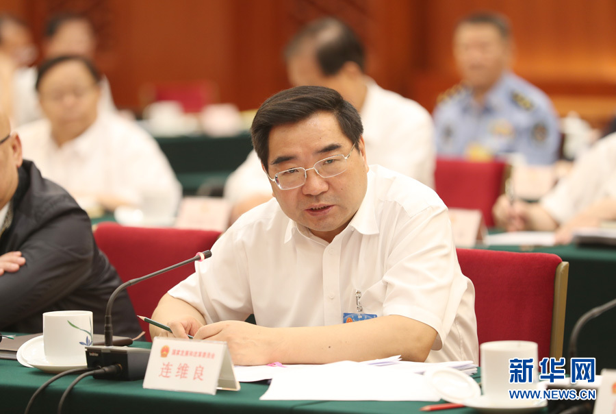 7月10日上午,十三届全国人大常委会第四次会议举行联组会议,就大气污染防治法执法检查报告进行专题询问。图为发展改革委副主任连维良回答问题。新华网 郭小天 摄