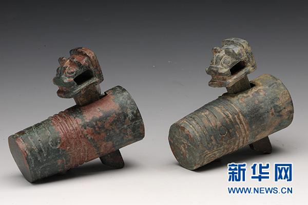 这是位于陕西省宜川县的虫坪塬遗址车马坑出土的辖軎(资料照片)。新华社发(陕西省考古研究院供图)