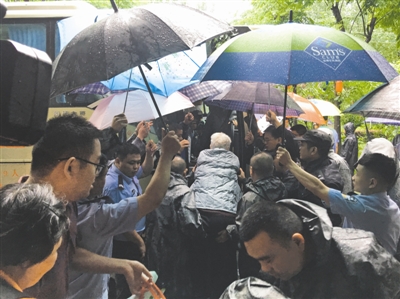 众人响应 用伞筑成避雨通道 “能护送老人是荣耀”