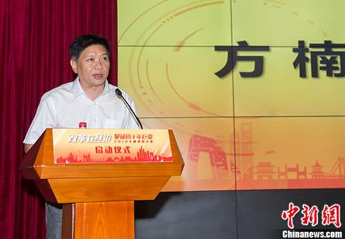 中央网信办移动网络管理局局长方楠(右二)、中国新闻社社长章新新(左一)、中国摄影家协会主席李舸(右一)、中央国家机关摄影协会主席杨凯生(左二)共同启动大赛。
