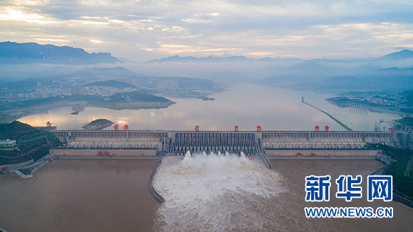 7月13日,三峡大坝开启泄洪深孔下泄上游来水,腾出库容。新华社发(郑家裕 摄)