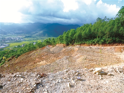 林德发、林风掌控的公司对北林村林地滥砍滥伐,又在被毁坏的林地上开采挖矿,对当地生态环境造成严重破坏。图为北林村因采矿而裸露的土地。(资料图片)