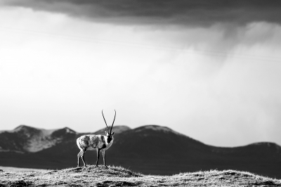 一只藏羚羊在青海可可西里地区觅食(2015年5月19日摄)。新华社发