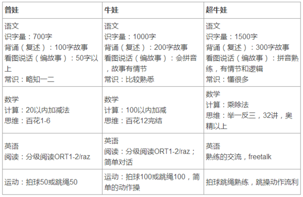 (网络上流传的“幼升小普娃牛娃”配置表截图)
