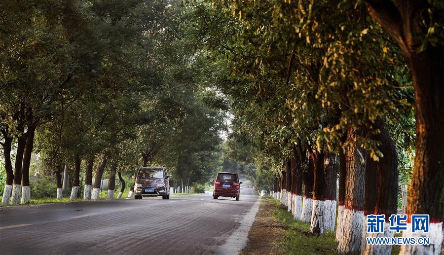 7月19日,汽车行驶在合阳县的乡村公路上。全县城镇乡村绿化同步提升,完成了20条道路绿化,主干道绿地率25.6%,次干道绿地率21%。 新华社记者 刘莲芬 摄