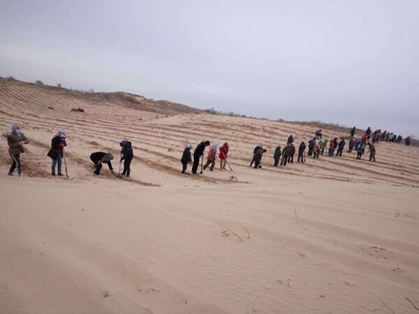 “一场大风,各家各户门口全被沙子堵上了,对面几十米看不见人。栽树时必须围着头巾,风太大了,刮得睁不开眼睛。冬天,风吹到身上,就像凉水泼到身上,入骨的冷。”马辉是阿尔乡镇副镇长(原林业站长),回想起当年栽树的场景,不由得一阵心酸。“树就是这样一棵一棵在沙地上栽,等好不容易把树栽完了,突然一场大风,又被残酷地连根拔起。