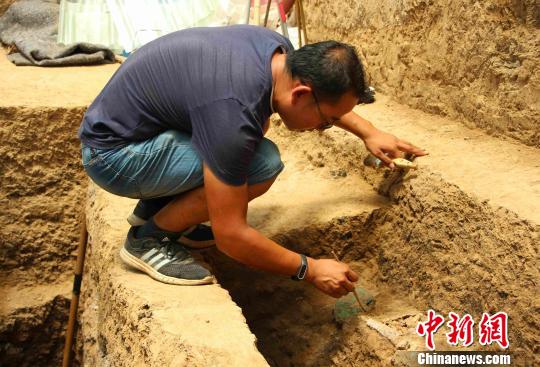 自2017年10月启动抢救性发掘以来,大韩东周墓地已发现小型墓葬100座,大中型墓葬36座。图为考古人员在一墓葬内发现墓主和殉人。赵晓 摄