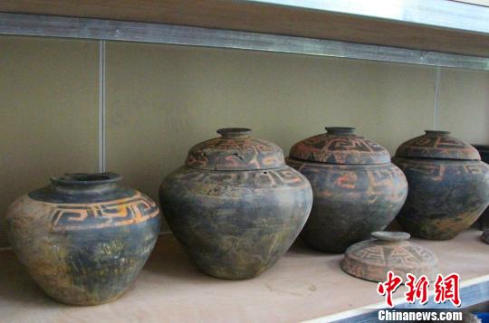 目前,大韩东周墓地出土陶器、玉器、骨器、青铜器等800余件。图为在墓地出土的彩绘陶器。赵晓 摄
